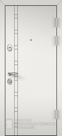 Размеры этой двери могут быть адаптированы под любые требования, что делает её универсальной для различных помещений. Каркас двери выполнен из профильной трубы 50x25 мм, что обеспечивает дополнительную прочность и устойчивость к деформациям. Лист металла толщиной 2 мм и ребра жёсткости 40x25 мм добавляют двери надёжности и долговечности. Для дополнительной защиты предусмотрены противосъёмные блокираторы диаметром 10 мм, что значительно увеличивает безопасность.